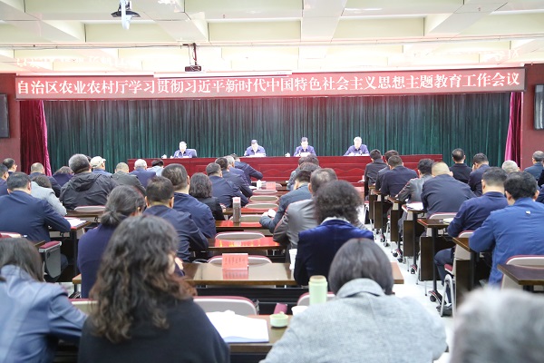 4月12日下午,自治区农业农村厅召开学习贯彻习近平新时代中国特色社会主义思想主题教育工作会议,深入学习贯彻习近平总书记在中央主题教育工作会议上的重要讲话精神,按照自治区党委的部署要求,对自治区农业农村厅系统开展主题教育动员安排。农业农村厅党组副书记、厅长艾合买提·买买提作动员讲话,自治区第七巡回指导组组长邓熙到会指导。厅党组成员、副厅长武洪斌同志主持会议。