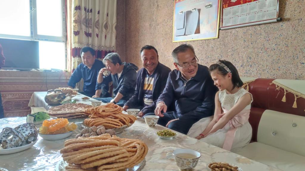 随后,冯东河书记一行分别对拜什吐普村的庭院牛羊养殖、阿勒台开斯克村的庭院蔬菜大棚开展了入户走访,并深入田间地头了解小麦、棉花和西甜瓜种植情况。他指出,发展庭院经济,是一产经济的重要补充,有效利用闲散资源,有利于农户增收致富。最后,冯东河书记还看望了居住在阿勒台开斯克村的亲戚,亲切问候了生活状况和工作情况。