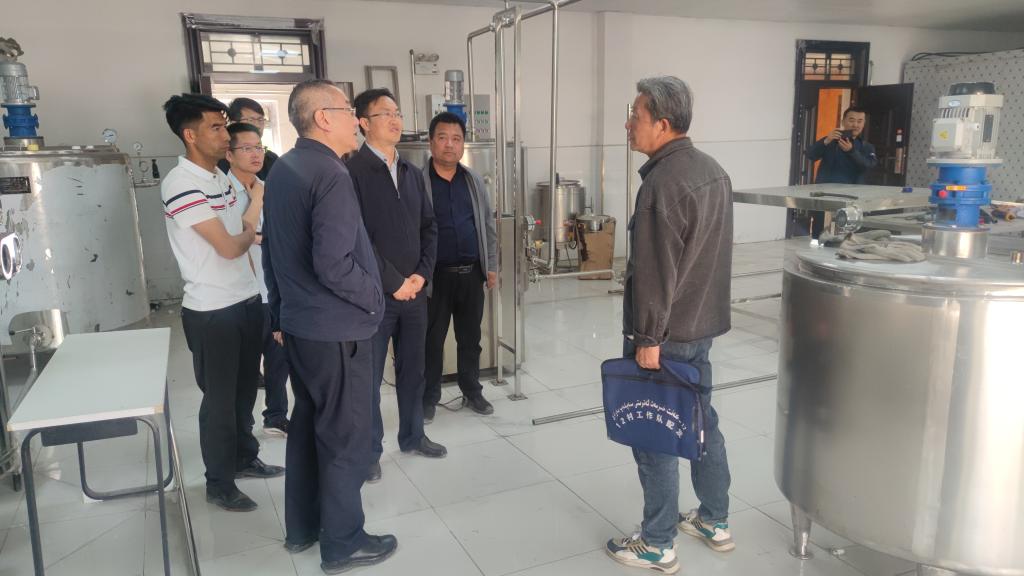 蛋鸡场调研结束后,实地察看了阿勒台开斯克村正在建设的乳品加工车间。经第一书记华实同志介绍,该乳品车间总投资100余万元,建成后可日产奶制品2000公斤,生产包括酸奶、饮料、冰激凌在内的三类共10种产品,目前已基本完成生产线安装与调试。冯东河书记对该乳品厂的规划和建设给予了高度评价,该项目建成后既能解决周边农民牛奶销售困难的实际问题,又可带动奶牛养殖经济效益、增加就业岗位,希望继续发挥“访惠聚”驻村工作队的集体智慧,做好做实,从产销两方面统筹考虑、长远规划,力争良性运行。