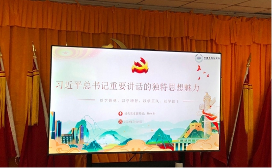 在支部书记讲党课环节,机关党支部书记杨向东围绕主题教育讲一堂专题党课——《习近平总书记重要讲话的独特思想魅力》。党员干部们纷纷表示,通过学习了这堂与众不同的党课,感叹习近平总书记讲话的“九大魅力”,54个具体表现形式,让人切实感受到“话”原来这么说,会更加让人舒服,会真正入脑、入心更入行。