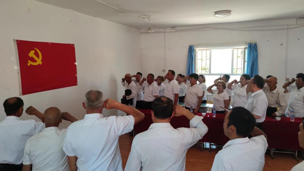 期间,杨向东同志和刘应进同志分别讲党课,并与全体党员代表开展了座谈交流,为受表彰的优秀党员颁发了荣誉证书和奖品。勉励全体党员同志要在院党委和镇党委的坚强领导和关心下,继承和发扬党的光荣传统,不忘初心、牢记使命,为乡村振兴事业和社会综合治理工作再立新功。党员代表古再努尔、阿依木泥沙重温入党申请书并发言,向大家分享了自己的入党经历和感悟。
