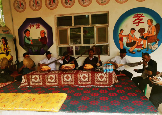 在文化大舞台和健身体育服务平台,拜什吐普村的红石榴文艺小分队给观摩代表们表演了文艺节目。