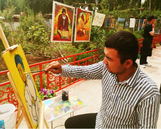 在拜什吐普村六小队库尔班·热西提家中的文化大院、农家书屋里人头攒动,人声鼎沸,来自全村镇的近百名第一书记、支部书记和负责意识形态领域宣传、文化工作的干部学习观摩红色书屋。大院墙上绘制着中华优秀传统文化,院子摆设着乐器、围棋等群众喜闻乐见的器具,陈列有农民自己绣的抱枕和制作的葫芦艺术作品等。大院内建有占地面积120平方米的农家书屋,总藏书426本,每周向村民免费开放3天。通过创建文化大院、农家书屋,给群众带来丰富多彩的精神生活。