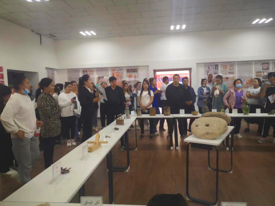 在教育服务平台——新疆“四史”馆,通过周一“三结合”、农牧民夜校、党团活动日等多种形式,组织群众讲解新疆“四史”。在老物件展览区,群众在学习新疆四史的过程中可以参观年代久远的收藏品。