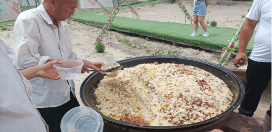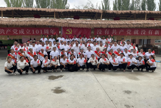 “三棵树”风情园不仅是拜什吐普村工作队打造的乡村旅游重要项目之一,也是周边乡镇企事业单位举办各类活动的重要场所,仅2022年就举办各类活动12场。在建党101周年时,拜什吐普村和阿勒台开斯克村党员和群众代表400余人在“三棵树”风情园联合开展“庆七一”主题党日活动,重温入党誓词,合唱“没有共产党,就没有新中国”,共饮一壶茶,同吃一锅饭,盛况喜人。