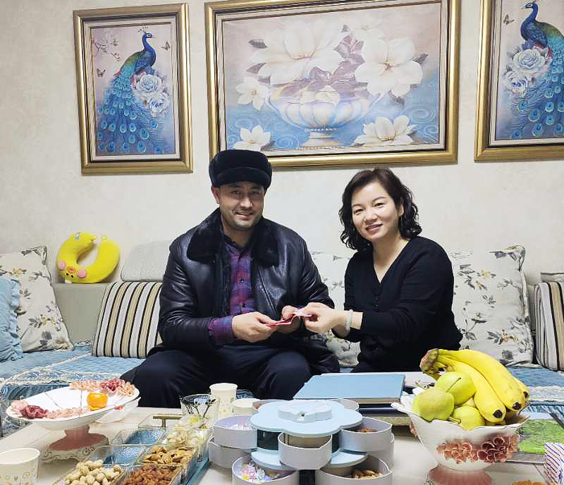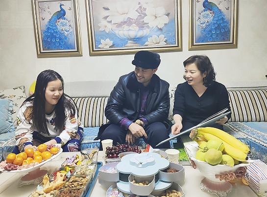在中华民族传统佳节春节来临之际,新疆畜牧科学院经济与信息研究所副所长刘娜娜诚邀“民族团结一家亲”亲戚克尤木·阿布都热西提到家里做客,大家欢聚一堂,共话民族团结情,其乐融融喜迎新春佳节。