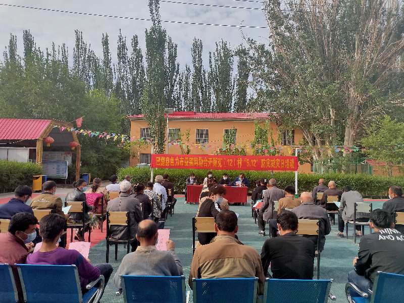 2020年5月12日是我国第12个全国减灾防灾日,为维护人民群众切身利益和生命财产安全,围绕“提升基层应急能力,筑牢防灾减灾救灾的人民防线”主题,新疆畜牧科学院驻巴楚县色力布亚镇阿勒台开斯克(12)村工作队组织开展了地震应急疏散演练、防灾减灾知识宣传及防灾减灾知识竞赛系列活动。工作队员、村干部、小队长、村警、协警、保安、联户长及村民代表等共计80余人参加了活动。