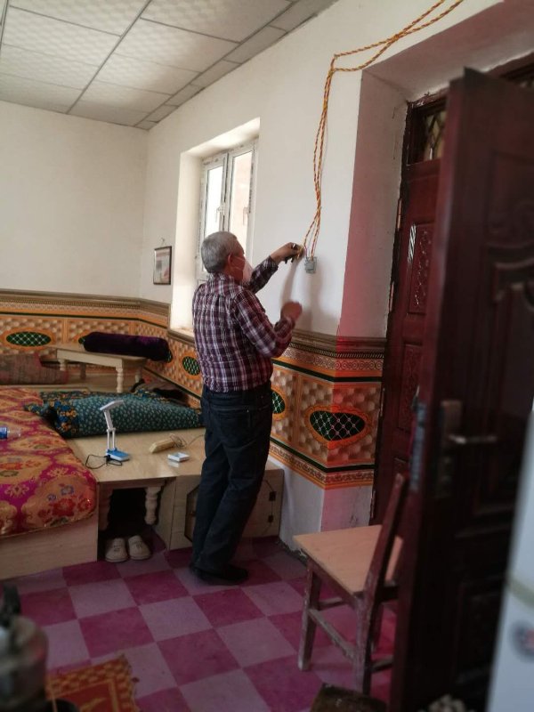 饲料所结亲干部康尚元在吐尔·热合木家安装线路和插座