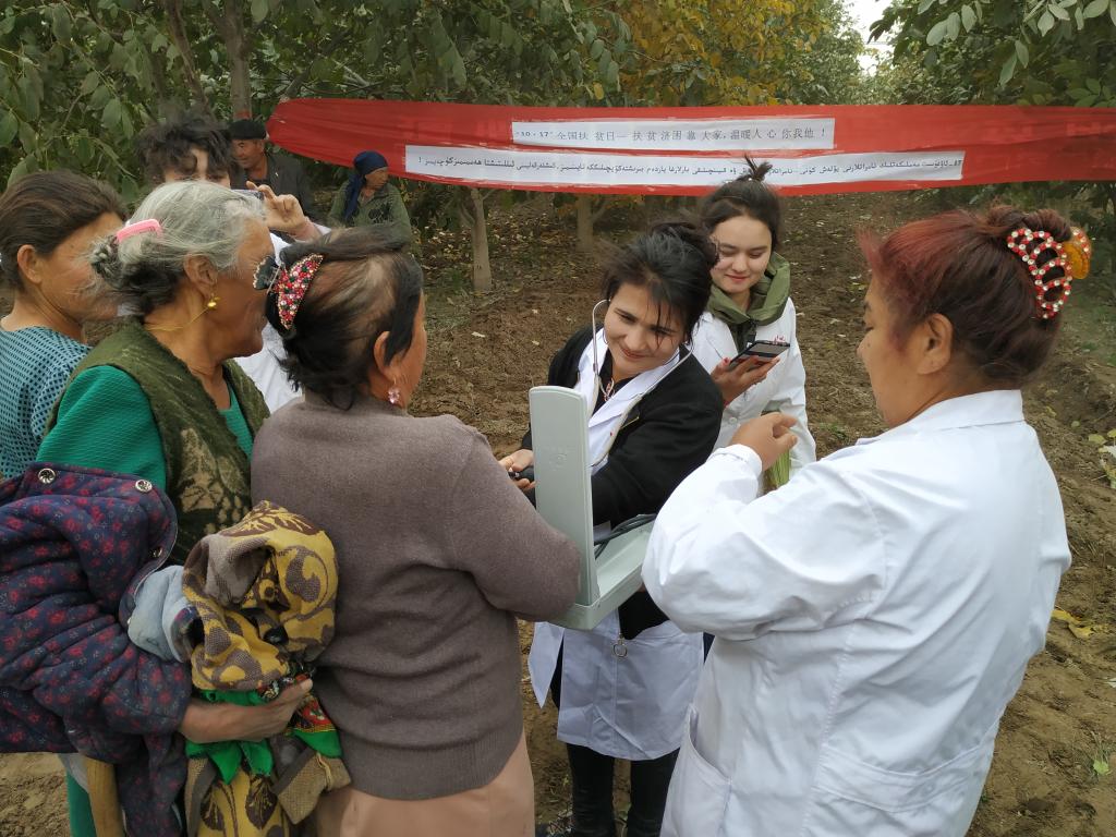 2018年10月17日,是全国第五个扶贫日,是第26个国际消除贫困日,也是中国传统的重阳节。正值秋收农忙季节,新疆畜科院拜什吐普(15)村工作队联合镇中心医院在田间地头开展了系列活动。