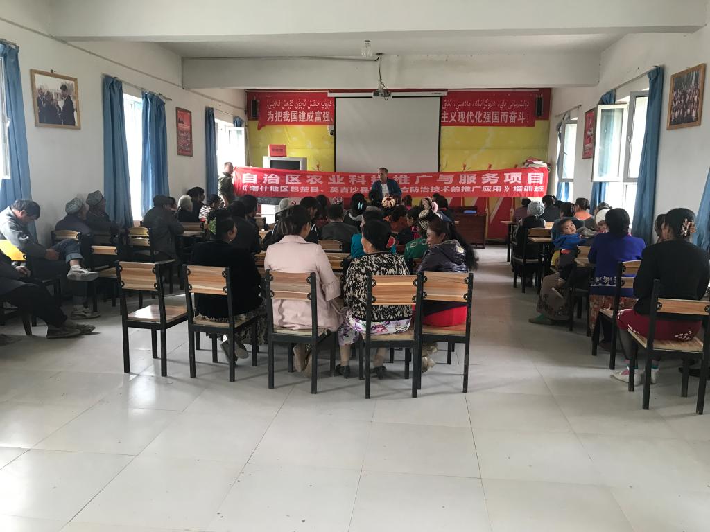 8月22日—27日,利用我院第五轮第二批“民族团结一家亲”结亲周活动之际,我院兽医研究所陈世军、郭会玲等科研人员一行7人组成专家团队,分别在巴楚县色力布亚镇12村和15村及英吉沙县色提力乡莫木鲁克吾斯塘博依(2村),利用周一升国旗、夜校、宣讲会等村民集中的时间,举办了《动物疫病防治技术培训班》3期,共培训农牧民1000余人。此次技术培训服务活动得到自治区党委农办经济发展处处长关文军和我院“访惠聚”驻村工作队领队、副院长郑文新和12村驻村工作队队长张先武等的大力支持,各“访惠聚”驻村工作队提前布置,认真安排,取得了预期成效。