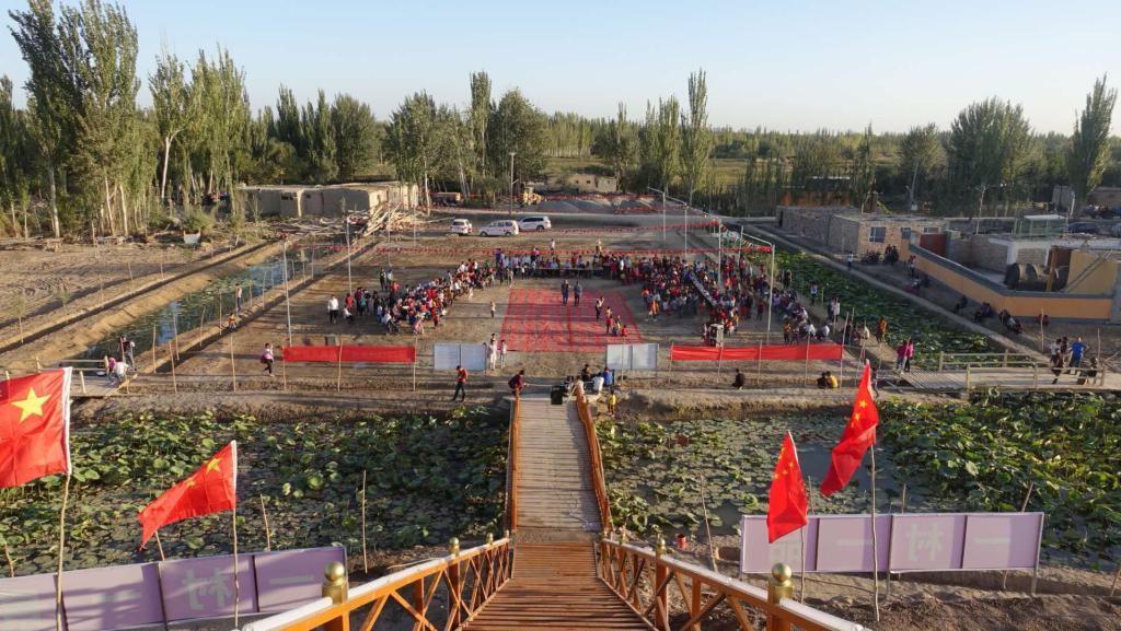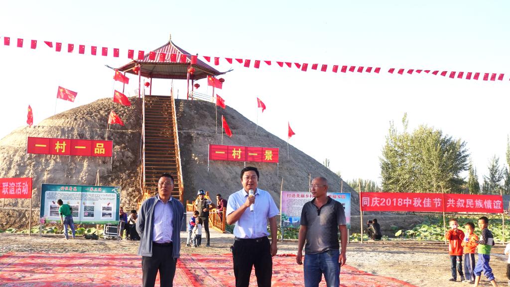 中秋佳节,驻村工作队员、结亲干部与亲戚村民同吃一桌饭,共同品尝村民自家田地的核桃、红枣、葡萄、无花果,还有村民自己做的抓饭、凉粉、烤包子等美食,结亲干部邀请村民亲戚共品中秋月饼,为村民介绍中华传统佳节的文化。活动最后结亲干部和村民争相登上观光顶,欣赏近10亩的荷塘美景,活动在欢快的音乐声和干部村民依依不舍的话别中圆满结束。