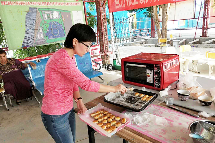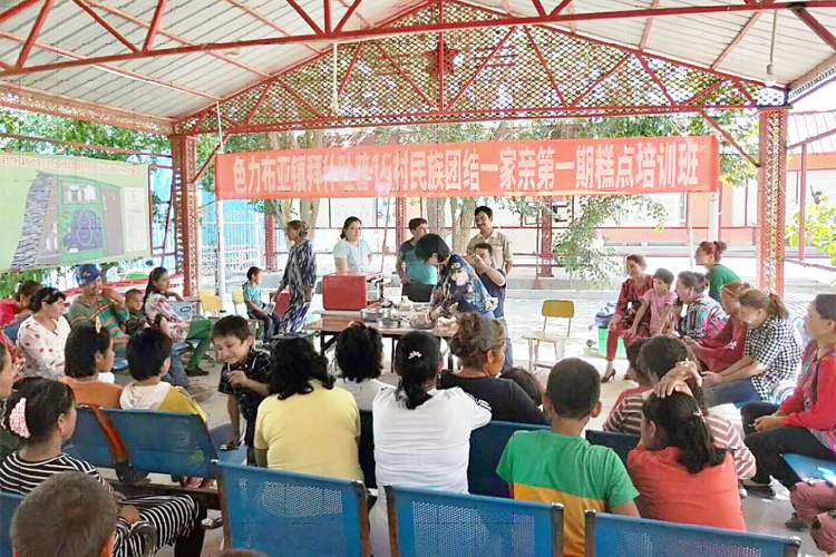 7月3日,新疆畜牧科学院草业研究所干部热娜利用结亲周开展入户走访,进行四同四送活动的同时,充分利用自己对制作糕点的喜爱,在色力布亚镇拜什吐普15村举办了“民族团结一家亲第一期糕点培训班”,希望通过培训班让村里更多的女同志掌握糕点制作的技术。