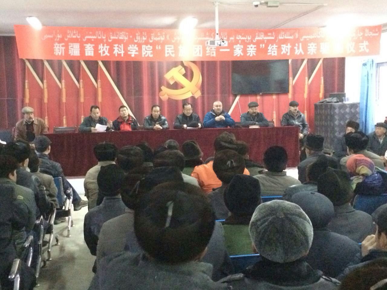 冯东河书记说,民族团结是新疆各族人民的生命线。开展“民族团结一家亲”活动是贯彻落实自治区党委书记陈全国的重要讲话精神的具体体现,是贯彻落实新疆社会稳定和长治久安总目标的重大举措;是践行党的群众路线、保持同人民群众血肉联系的有效渠道,是保障改善民生、凝聚争取民心的迫切需要;是加快新疆贫困地区脱贫致富,全面建成小康社会的有效措施。我们要像石榴籽一样紧紧的团结在一起,把各族群众团结在党的周围,围绕总目标、紧扣总目标,聚焦总目标,实现总目标。按照自治区党委对开展“民族团结一家亲”活动的总体要求,新疆畜牧科学院所属机关各处室、研究所全体干部职工近400人,全部都要与我院驻色力布亚镇阿勒台开斯克(12)村、拜什吐普(15)村各族群众结对子、认亲戚。今天,我们在拜什吐普(15)村召开“民族团结一家亲”活动启动仪式,我院将有213人在拜什吐普(15)村和213户村民结亲。我们将在2017年春节前完成全院干部职工结对认亲工作。