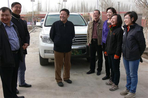 3月20日一大早,自治区畜牧厅党组书记张志恒一行,在喀什地区行署副专员阿不都克里木、畜牧厅副巡视员高庆超、地区畜牧兽医局局长艾尼瓦尔、巴楚县委书记何强等陪同下,来到畜牧厅驻巴楚县恰尔巴格乡7村,看望慰问了第一工作组的队员们,还送来了生活用品、体育文化用品和维汉两种文字的畜牧实用技术小册子等,也带来了厅党组和全厅干部职工的问候。工作队员们都非常激动,就像见到了久未相见的亲人,感到格外亲切。