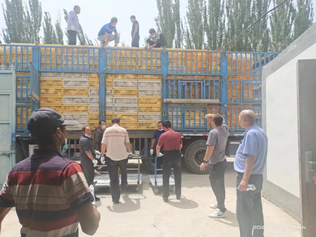 正值5月农忙时节,巴楚县色力布亚镇12村养鸡场驶进一辆辆满载鸡苗的运输车,该场首批购进的8000羽毛茸茸京粉蛋鸡有了温暖的新家。