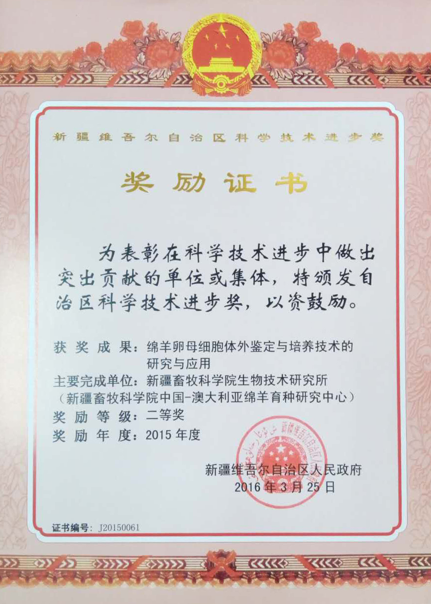 该项目从胚胎发育学和分子生物学角度,首次建立了以亮甲酚蓝(BCB)筛选为主的一套具有自主知识产权的绵羊卵母细胞体外鉴定方法(专利:ZL200910113567.9),同时通过添加磷酸二酯酶抑制剂(milrinon)、腺苷酸环化酶激活剂(FSK)以及抗氧化剂等对卵母细胞体外培养方法进行优化(专利:ZL201210079810.1),解决了传统卵母细胞质量鉴定方法无法判断胞质成熟度的问题;也解决了普遍存在的供体因多次胚胎移植导致粘连无法再使用的问题,使得单只拟淘汰供体新增后代7-11只,使当前利用胚胎移植技术快繁优质种母羊的效率再提高50%以上,进一步提高了供体利用率;建立了以BCB筛选和玻璃化冷冻为一体的卵母细胞体外培养与冷冻保存技术平台,为优质种畜或濒危动物卵母细胞保存提供了技术支持。该项目采用的技术方法和路线合理,数据、资料可靠,需要解决的难点多,实验次数、规模工作量大,在技术方法上有大的突破,自主创新程度较高。