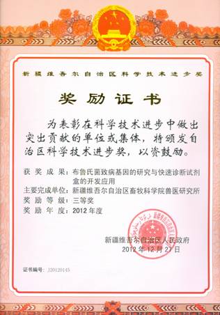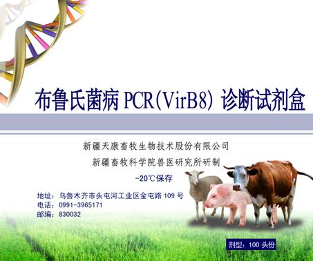 以布鲁氏菌四型分泌系统的致病力因子为基础,研制了用于家畜羊、牛、猪、马、犬等动物布鲁氏菌病诊断的PCR(VirB8)试剂盒。建立了布鲁氏菌种型鉴定的AMOS-PCR方法,对布鲁氏菌牛种1,2,3a,4型、牛种3b,5,6,9型、羊种、猪种、犬种区分鉴别,一般在24h之内可获得布病病原检测鉴定结果,为布鲁氏菌病的监测与防治的研究提供科学的检测方法。