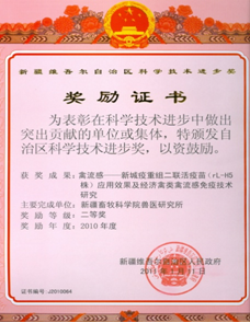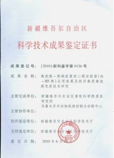 3.推广前景:该经济禽类禽流感疫苗免疫程序已经于2008年正式列入乌鲁木齐市重大动物疫病免疫方案中,并在我区的规模养鸡场中得到了广泛的推广应用,效果非常显著。