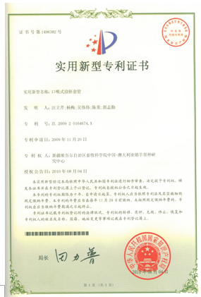 该技术于2010年取得实用新型专利,证书号:ZL 200920164674.X。