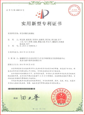 专利---有色有髓毛检测仪于2010年取得国家实用新型专利,专利号:ZL 2010 2 0686604.3
