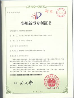 该产品于2009年取得国家实用新型专利,证书号:ZL20092 0139940.3 。