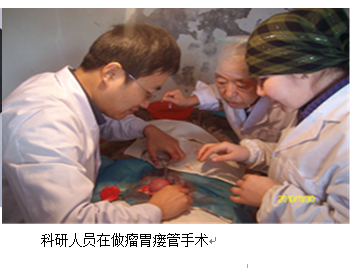 2.技术要点:(1)瘘管:由瘘管筒、瘘管塞、外夹板、内夹板、挤压螺栓、密封螺盖等6部分组成;(2)术中操作:手术部位选择精确、开口大小适中、荷包缝合结实牢靠、层层组织缝合平整;(3)术后护理:术后用药、消毒科学,10~15天内伤口愈合良好。