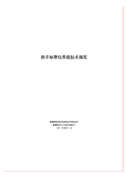 2.技术要点:(1)根据养殖规模确定圈舍尺寸,严格按照不同畜种、不同年龄段、不同性别、不同用途进行圈舍建设及配套设施的建设;(2)对主要肉羊品种进行外貌评定及生产性能指标的规定;(3)规定了肉羊的杂交、人工授精、发情鉴定以及妊娠诊断技术;(4)规范了肉羊放牧与舍饲条件种公羊、生产母羊、育成羊、羔羊的饲养管理,去势、断尾、修蹄、分娩时间及方法;(5)饲料进行原料采购、生产加工及调制、贮藏以及饲料配方的制定;(6)肉羊养殖方面主要疫病防控措施、常见传染病症状与治疗、寄生虫病的防治、免疫程序等。
