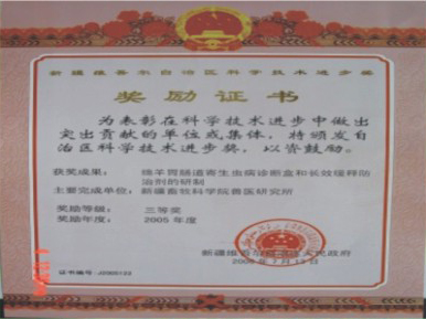 该成果于2005年通过自治区成果鉴定委员会鉴定【(2005)新科鉴字第0104号】,荣获2005年度自治区科技进步二等奖(j2005122)