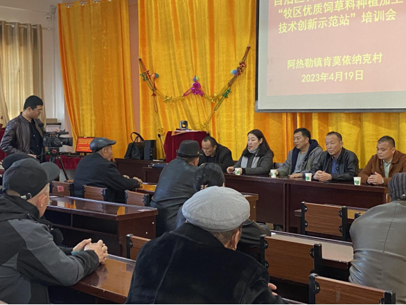 为解决青河县优质饲草料短缺问题,助推畜牧业高质量发展,结合主题教育办实事解民忧活动,4月17日至22日,草业研究所董志国研究员和沙吾列副研究员,深入青河县举办优质饲草料高效种植加工技术培训班,提高种植户专业技能。来自该县农业农村局直属站所和阿热勒镇塔拉特村、肯莫依纳克村和阿格达拉镇阿格达拉村畜牧兽医站的技术人员和农牧民共150余人参加了培训。