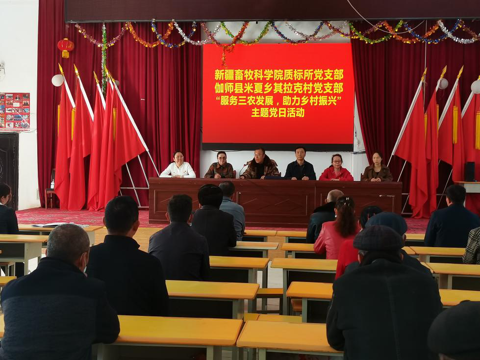 畜牧业质量标准研究所党支部一行3人前往伽师县米厦乡其拉克村,共同开展了以“服务三农发展,助力乡村振兴”为主题的党日活动,村两委班子成员、农民党员和致富带头人代表共60余人参加活动。其拉克村第一书记周卫东围绕村级组织阵地、乡村振兴、特色产业培育、农民增收等方面工作,介绍了其拉克村的发展情况。畜牧业质量标准研究所党支部书记陈新文介绍了所党支部情况,表示将以此次共建为契机,加强两个党支部的党建交流互动,充分发挥技术优势,在畜牧养殖、产业发展、农民增收等方面找准切入点,开展常态化的群众互动交往、科技项目合作和人员技术支持,为其拉克村创建乡村振兴示范村贡献一份力量。其拉克村参会党员们表示,此次活动非常有意义,通过党支部共建,让我们更加深入学习领会了党的二十大精神和中央“三农”工作的部署要求,也更加体会到了党建工作在乡村振兴中所发挥的作用,我们党员一定要发挥模范带头作用,为其拉克村乡村振兴和发展贡献力量。