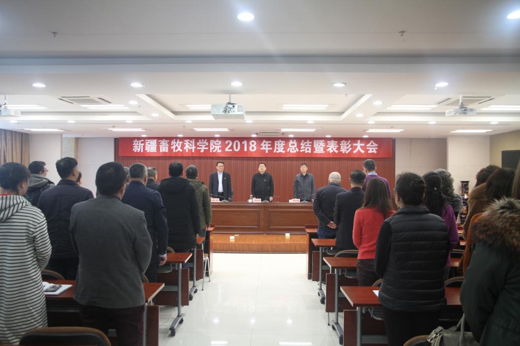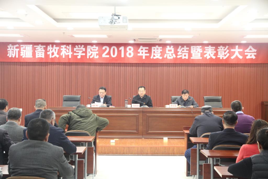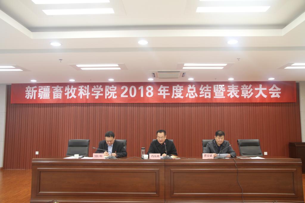 2019年1月31日上午,新疆畜牧科学院召开2018年度工作总结暨表彰大会。大会由院党委委员、副院长曹宏斌主持,自治区畜牧兽医局党组成员,院党委书记、副院长冯东河、院党委委员、副院长巴哈提别克·阿哈泰及全院各族干部职工、科技人员200余人参加了此次大会。