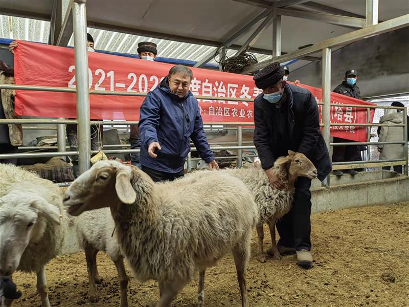 塔什库尔干乡富民村技术指导牧民如何改良绵羊品种。蔡涛摄