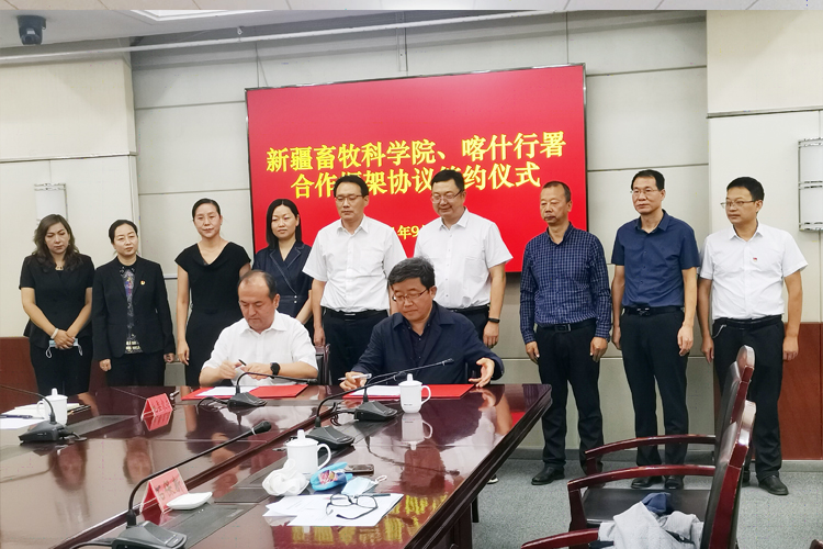 新疆畜牧科学院科技管理与国际合作处、畜牧研究所以及喀什地委农办、发改委、财政局、科协、科技局、农业农村局、乡村振兴局、畜牧兽医局单位负责人参加签约仪式。