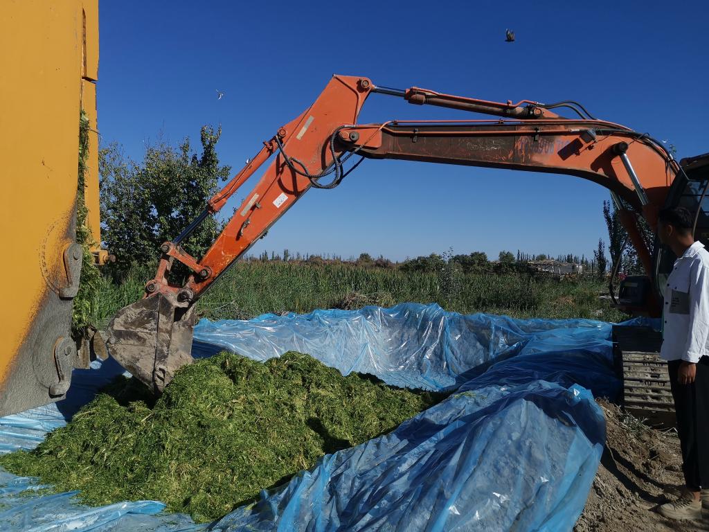 按照“南疆地区巨菌草种植生产、饲用品质分析及示范应用研究”项目实施计划,近日项目组成员前往项目所在地沙雅县萨依巴格村,对第一茬12亩巨菌草进行了收割、称重和后续的青贮压窖。此次种植的12亩巨菌草共收获57吨,平均亩产达4.75吨,取得较好效果。项目组按照后期饲喂试验的要求,对当地养殖农户的圈舍进行了改造,以保证后期工作的顺利实施。