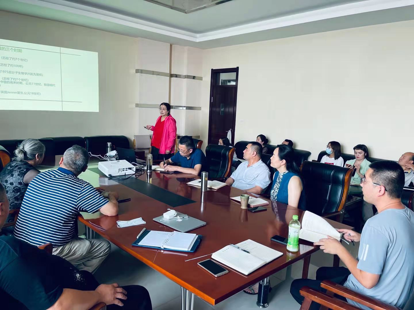 蔡宏教授用直观易懂的图片和深入浅出的讲述,围绕免疫学的发展、动物免疫系统的结构与功能、免疫应答与疫病防控等内容做了精彩讲座,参会科研人员结合承担的科研项目和我区动物防疫工作实际与蔡宏教授进行了热烈的交流研讨。通过本次讲座,使科研人员系统回顾并学习了免疫学发展及其在疫病防治方面的基础理论和科技趋势,对今后开展新型兽用疫苗研发、动物疫病流行监测分析提供了有力的学术指导。