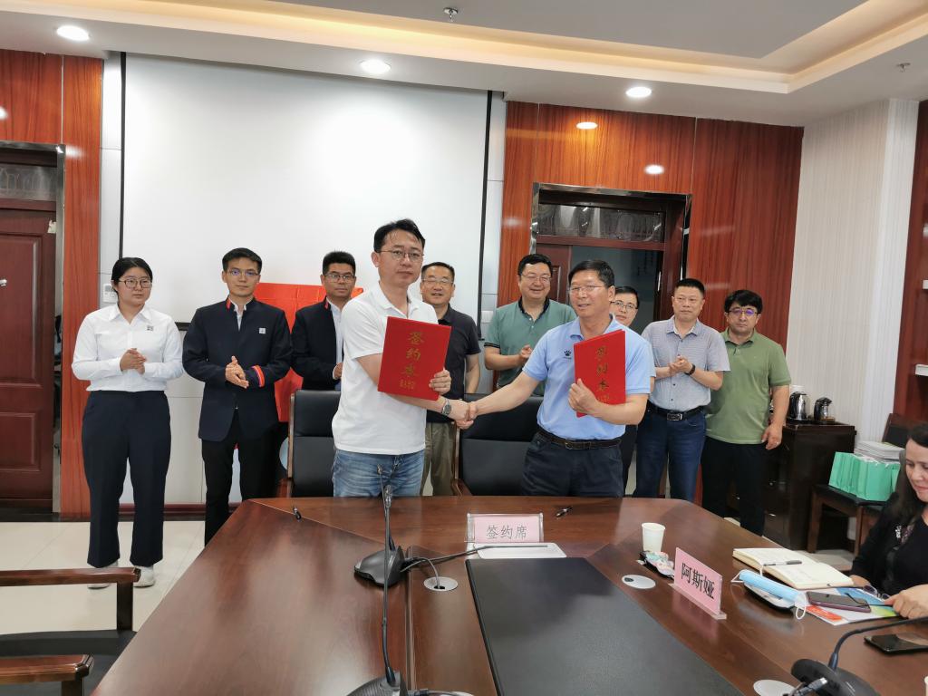 院科技管理与国际合作处、生物技术研究所、草业研究所、新疆康普森生物技术有限公司相关领导和专家出席了签约揭牌仪式。