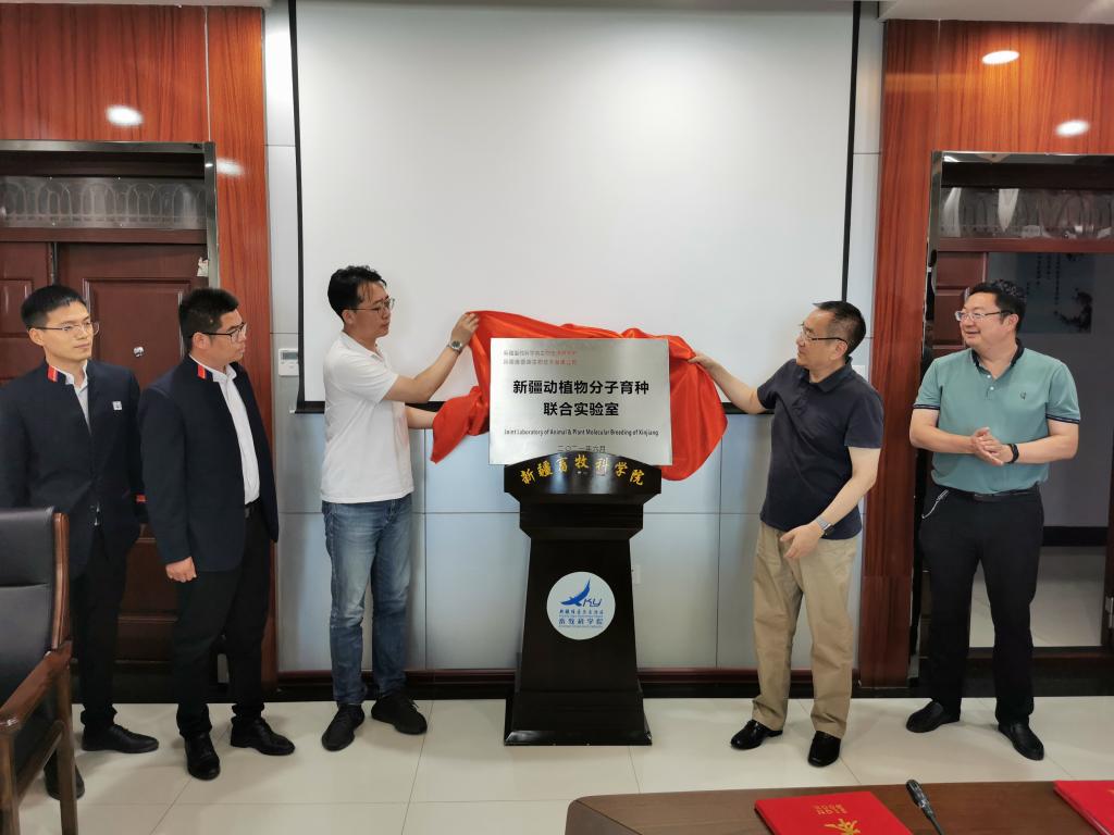签约仪式由院党委委员、副院长郑文新主持。生物技术研究所所长刘明军作为新疆畜牧科学院签约代表与北京康普森生物技术有限公司董事长刘继强共同签署了《新疆动植物分子育种联合实验室共建协议》。自治区畜牧兽医局党组成员,院党委书记、副院长冯东河与新疆康普森生物技术有限公司刘继强董事长共同为“新疆动植物分子育种联合实验室”揭牌。