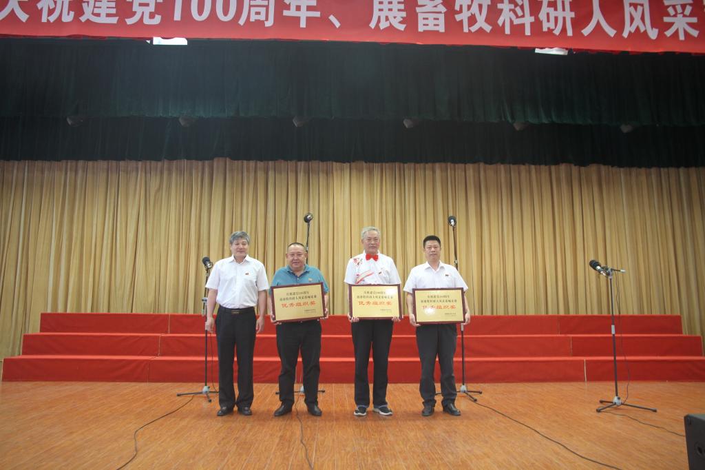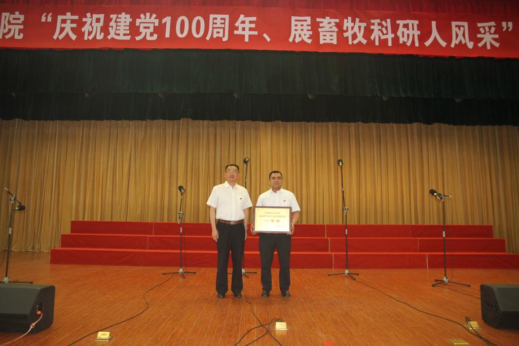 其次,举行了颁发“光荣在党50年”纪念章仪式。为庆祝建党100周年,党中央决定颁发“光荣在党50年”纪念章。这对于增强党员的荣誉感、归属感、使命感,汇聚全党为实现“十四五”规划和2035年远景目标持续奋斗的磅礴力量,具有十分重要的意义。我院共有19名老党员获此殊荣,张玉彦、任迅丹、杨振科3名同志亲临现场代表老党员参加颁奖仪式。老党员们几十年如一日,始终忠诚党的事业,践行党的宗旨,兢兢业业为党工作,在各个历史时期,在不同岗位和领域,为新疆畜牧业发展无私奉献、拼搏奋斗,做出了突出的贡献,党和人民不会忘记,我们畜牧人更不会忘记。