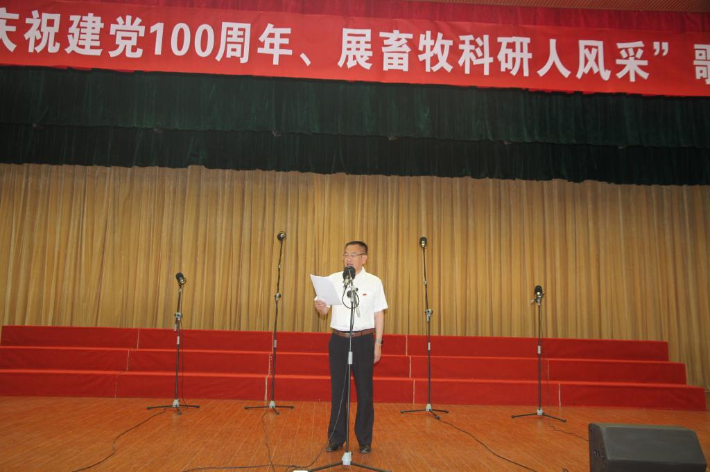 首先,冯东河书记做了庆祝建党100周年的讲话。他指出,我们党的一百年,是矢志践行初心使命的一百年,是筚路蓝缕奠基立业的一百年,是创造辉煌开辟未来的一百年。在百年接续奋斗中,党团结带领人民开辟了伟大道路,建立了伟大功业,铸就了伟大精神,积累了宝贵经验,创造了中华民族发展史、人类社会进步史上令人刮目相看的奇迹。回顾中国共产党的发展历程,我们无比自豪、激情澎湃; 展望新的伟大征程,我们豪情满怀、信心百倍。今天的歌咏比赛,是弘扬时代主旋律、丰富党史学习教育形式,向党的百年华诞献礼的实践载体,也是推动党史学习教育有声有色、走深走实的重要举措。希望广大党员干部以此次歌咏比赛为契机,以嘹亮歌声为动力,进一步提振精气神、激发新干劲、再创新辉煌,以更加饱满的热情、更加昂扬的斗志、更加务实的作风,持续深入学党史、悟思想、办实事、开新局。紧密地团结在以习近平同志为核心的党中央周围,高举中国特色社会主义伟大旗帜,深入学习贯彻落实第三次中央新疆工作座谈会精神、特别是习近平总书记关于新疆工作的重要讲话和重要指示精神,聚焦新时代党的治疆方略,牢牢扭住社会稳定和长治久安总目标,全面落实自治区党委“3+1”决策部署,科学编制我院“十四五”发展规划,坚持把解决牧业生产科技难题和基层农牧民技术需求作为落脚点,深化体制改革,统筹研究布局,加大应用研究与技术创新力度,促进成果转化应用,积极推进巩固拓展脱贫攻坚成果同乡村振兴有效衔接各项工作任务,努力为自治区畜牧业实现高质量发展提供科技支撑,为实现中华民族伟大复兴的中国梦贡献力量!