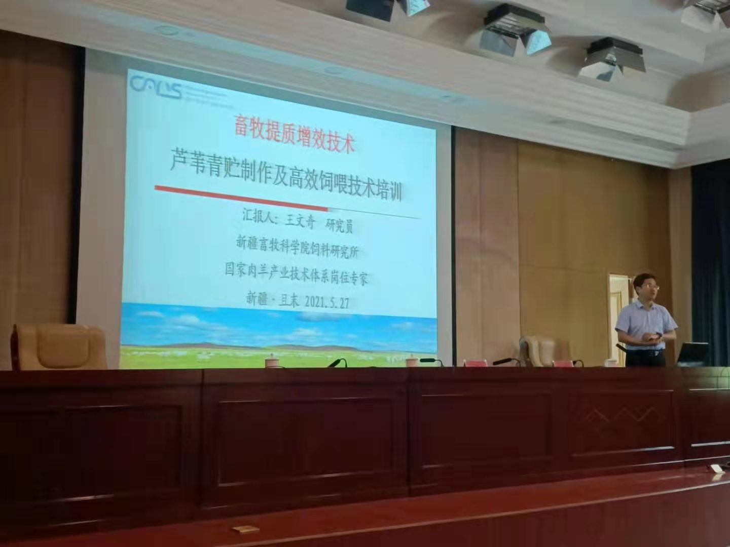 签约仪式结束后,王文奇研究员就“芦苇青贮饲料制作及高效饲喂技术”向参会的且末县畜牧兽医局相关领导、乡镇场专业技术员进行了系统培训,受到了技术人员的热列欢迎。