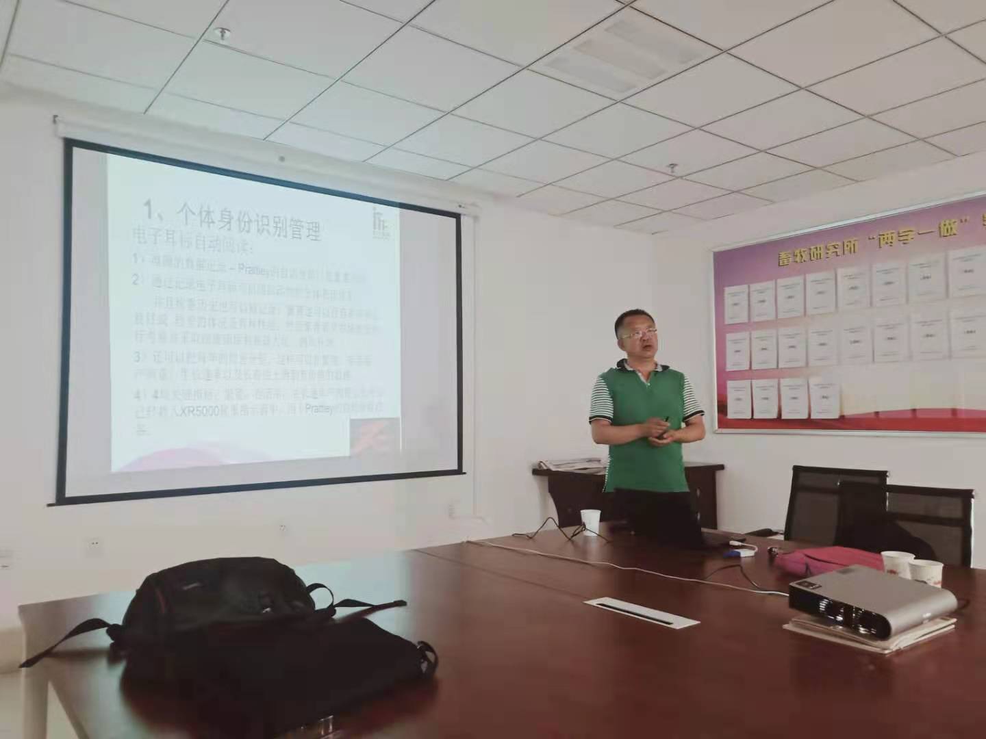 王少华专家多年从事牛场技术服务、销售等工作,曾参与多个乳业集团奶源基地和规模牧场兽用B超使用培训,也是国家奶牛产业技术体系金钥匙培训工程专家。会上,王少华专家交流了规模羊场生产性能测定一体化流程管理方案、个体身份识别管理、自动分群称重系统、B超监测系统,展示了国外近几年规模化牧场的现代智能化繁殖管理系统,与我院各研究室技术人员进行了热烈的讨论,并对今后开展合作研究的方向给予了建议,为进一步深化合作交流奠定了良好基础。