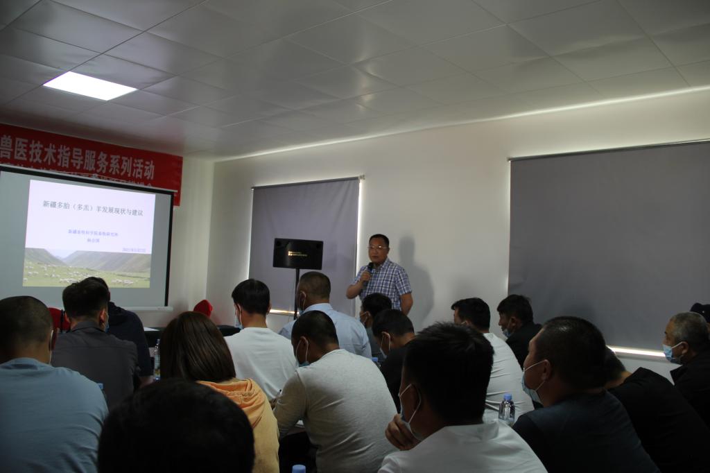 杨会国从新疆多胎(多羔)羊发展现状与建议、多胎肉羊饲养管理技术、肉羊常见病预防和诊疗技术、多胎肉羊高效繁育技术等方面对参会学员开展了“面对面”“手把手”专业讲授,进一步提高了基层专业技术人员高效肉羊繁育的理论和实操水平,帮助养殖场(户)掌握肉羊高效生产技术要点,解决养殖生产技术难题。