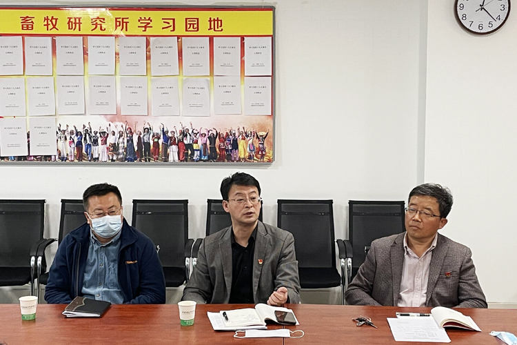 随后,机关党支部书记杨向东同志和畜牧研究所支部书记路立里同志分别就党史学习教育活动开展以来的学习心得和体会做了交流发言。杨向东同志结合党史学习分享了其在过去工作时发生的一起安全事故的处理始末,并结合当前全院开展的安全生产大排查工作,提醒大家要切实增强安全生产责任意识,加强安全知识宣传,严格落实领导带班和干部24小时值班值守制度,坚决防范事故发生。路立里同志分享了他在阿克苏地区拜城县挂职期间参与的一次维护稳定工作经历,希望大家珍惜新疆来之不易的和平稳定,立足本职工作,在巩固拓展脱贫攻坚成果接续乡村振兴的事业中发挥积极的科技支撑作用。