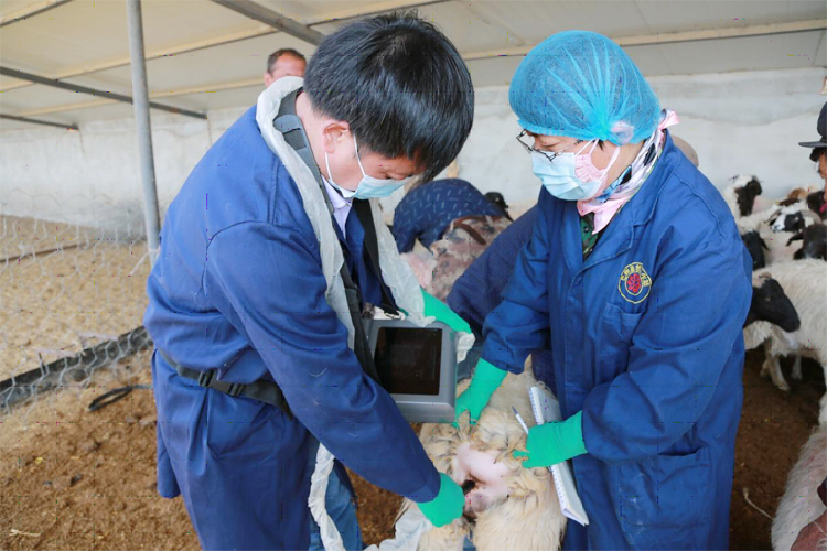新疆畜牧科学院专家正在开展巴音布鲁克生产母羊B超孕检