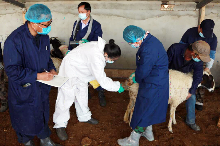 技术团队正在开展外源激素诱导巴音布鲁克羊生产多羔母羊同期处理