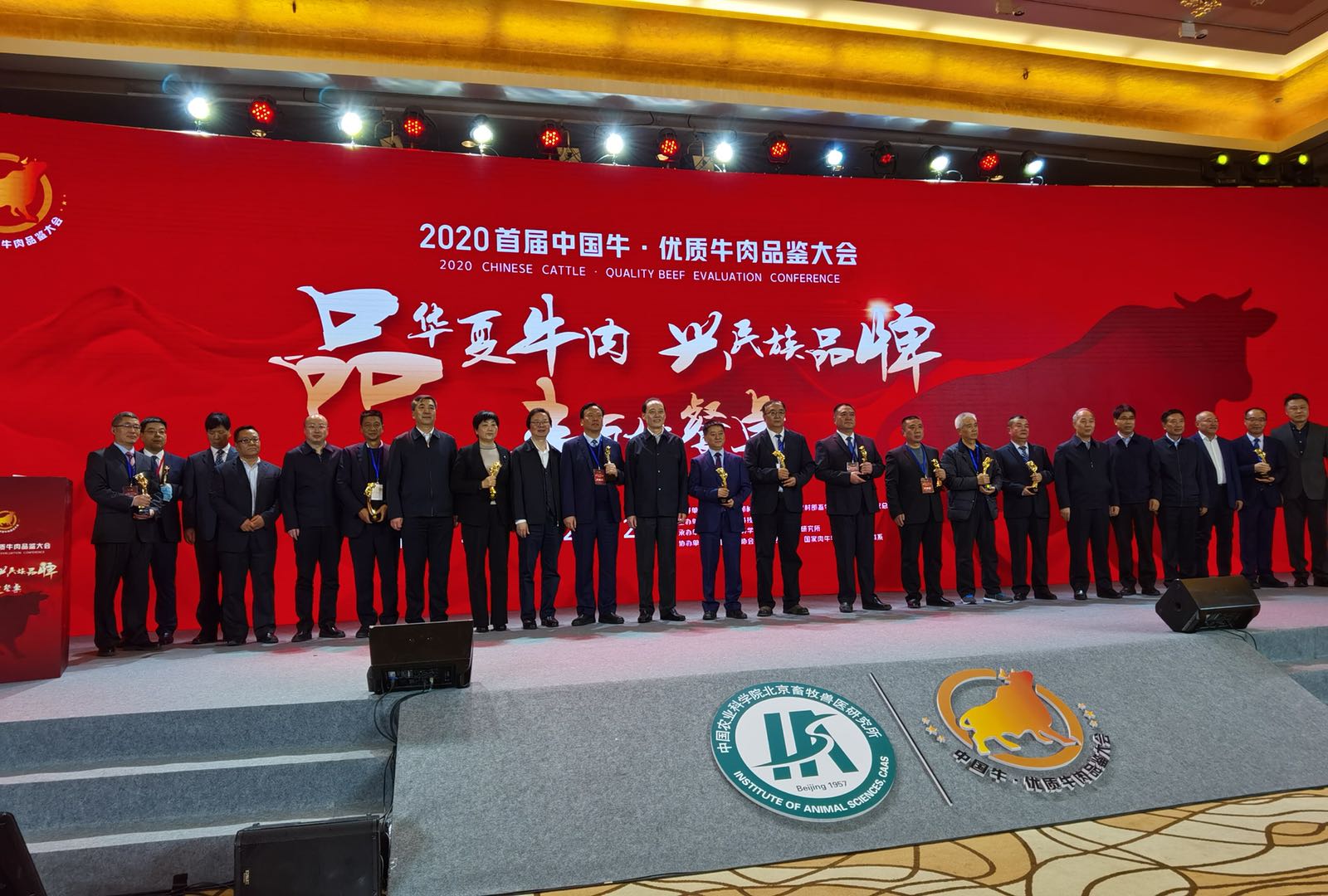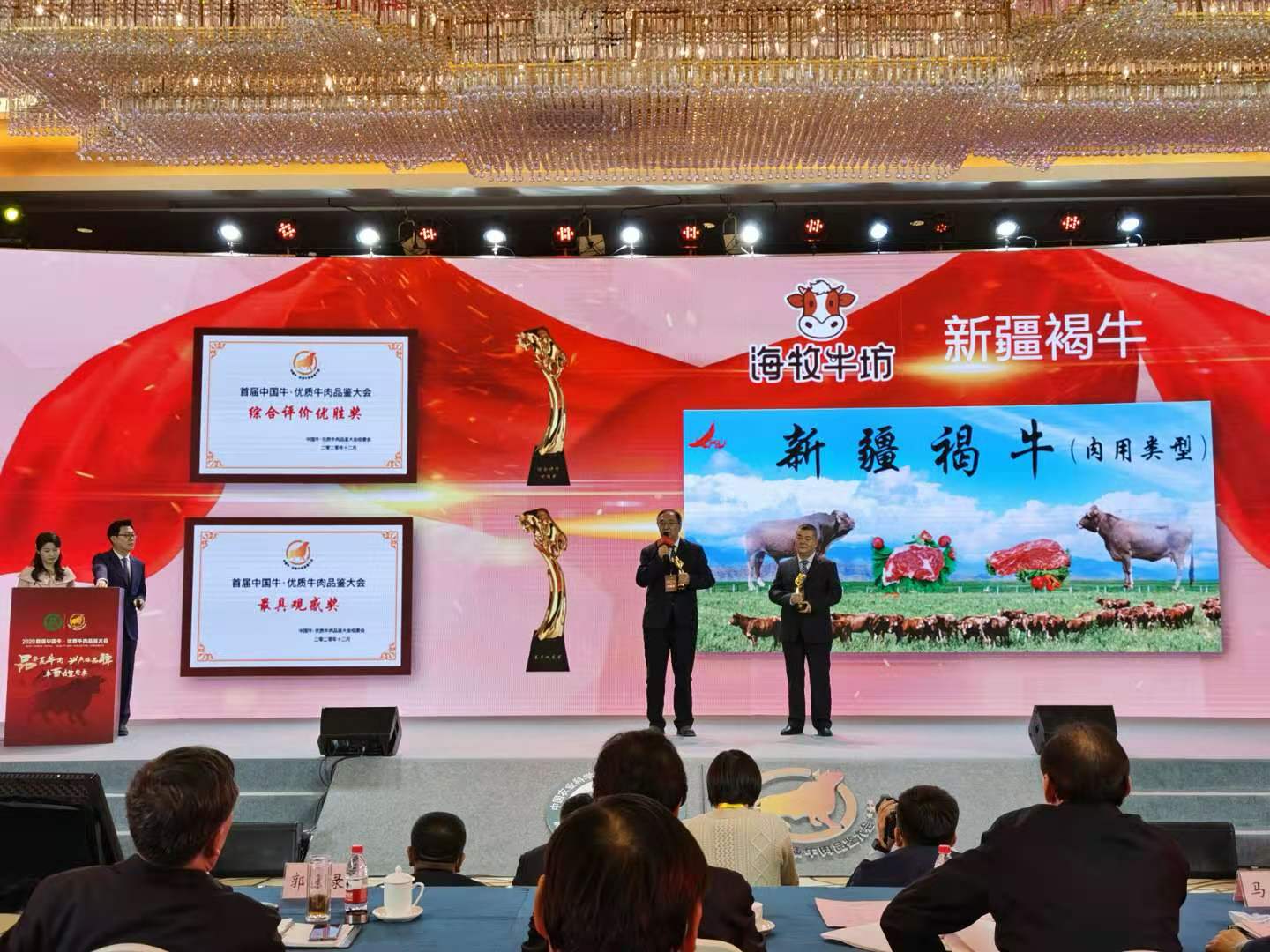 由农业农村部种业管理司、农业农村部畜牧兽医局、全国畜牧总站指导,国家畜牧科技创新联盟主办的首届中国牛•优质牛肉品鉴大会,12月2日在北京举行。本次活动以“品华夏牛肉,兴民族品牌,丰百姓餐桌”为主题,对报名参赛的全国13个省(区)22个品种(类群)的肉牛,经过品种鉴定、屠宰分割测定取样、理化指标检测、专家品鉴和消费者评价等环节,8个品种和1个类群脱颖而出。渤海黑牛、郏县红牛、新疆褐牛、云岭牛、晋南牛、鲁西牛、文山牛、夷陵牛被授予“高品质牛肉生产推介品种”荣誉证书,同时大会组织评选产生了综合评价优胜奖、最具风味奖、最具观感奖、最具特色奖、最具效益奖、品质特别奖等奖项,其中新疆褐牛获得“评价优胜奖”和唯一的“最具观感奖”。我院的张杨研究员从农业农村部党组成员、中国农业科学院院长唐华俊手中接过了荣誉证书和奖牌,在随后的获奖感言中,他十分激动地表示,衷心感谢大会的专家评委、消费者对他自己10多年培育新疆褐牛肉用类型的充分肯定和高度认可,进一步坚定了地方品种一定能够产出世界级高品质牛肉的信心,增强了继续立足本土优良牛种持续科技创新,努力加快肉用类型培育研究进程,积极推动新疆褐牛走出新疆,走向世界的信心,更加坚定了服务新疆的肉牛产业提质增效,服务边疆广大养牛户持续增产增收的决心。