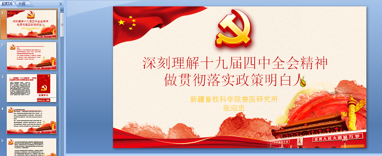 主题二:围绕党的十九届四中全会《关于坚持和完善中国特色社会主义制度、推进国家治理能力现代化若干重大问题的决定》,全面解读十九届四中全会精神。兽医研究所党支部、经济与信息研究所党支部和院机关党支部,分别从中国特色社会主义制度优势,国家治理能力现代化的体现,全会召开的意义、主题,以及全会作出一个重要判断、给出一项重要结论、提出一个“总体目标”、强调十三个方面的“显著优势”、明确十三个“坚持和完善”等不同角度、内容全面解读十九届四中全会精神。