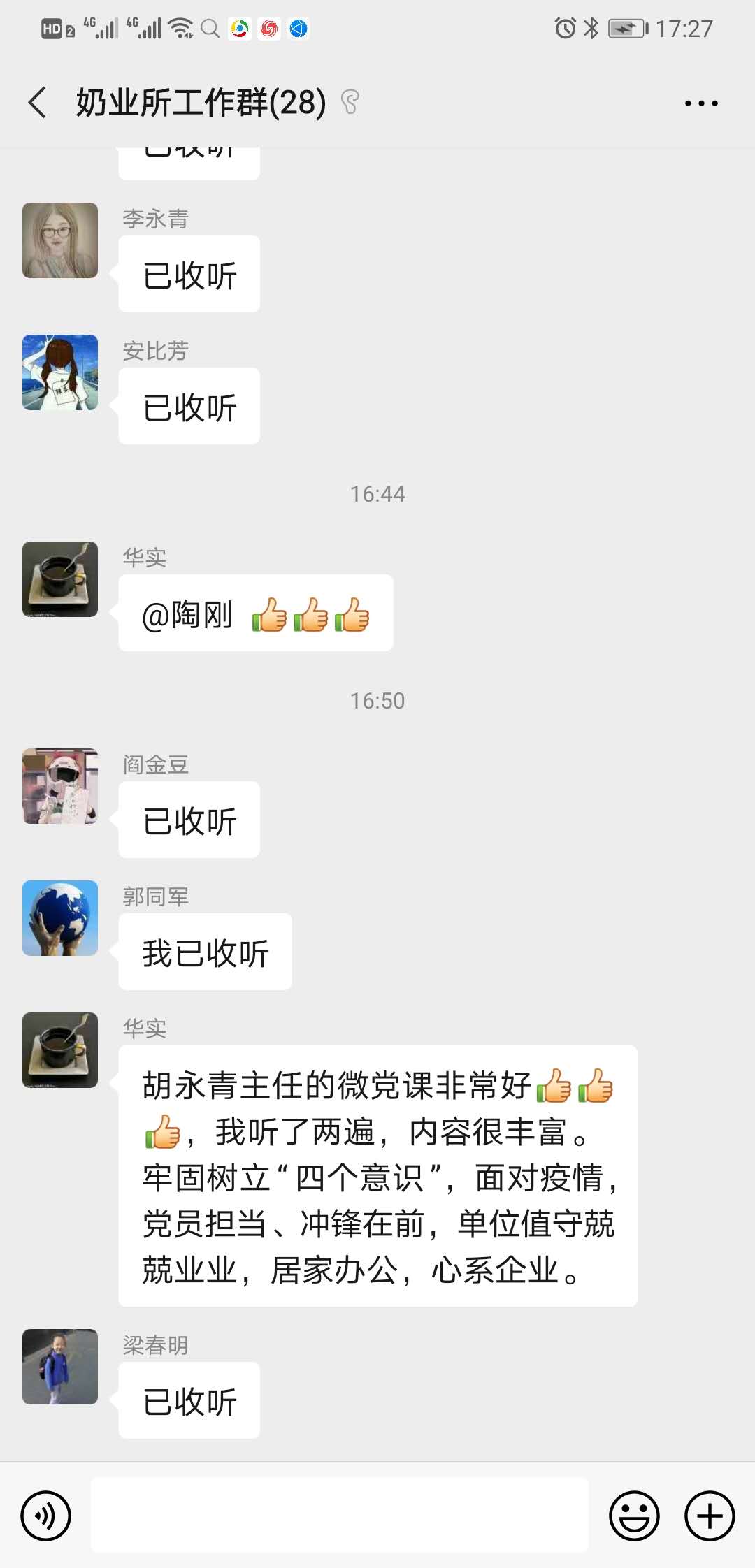 大家纷纷表示线上微党课活动增强党支部凝聚力,大家互相交流鼓励,增强了打赢疫情防控阻击战的必胜信心。