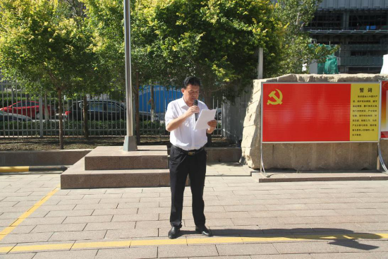 在雄伟的《义勇军进行曲》中,鲜艳的国旗冉冉升起,迎风飘扬,全体干部职工高唱国歌,面向国旗行注目礼。随后,院纪委(监察室)副书记杨向东领誓,全体党员面对鲜红的党旗,高举右拳,字字铿锵,重温入党誓词,彰显了我院党员干部不忘初心、牢记使命的坚定政治信念。
