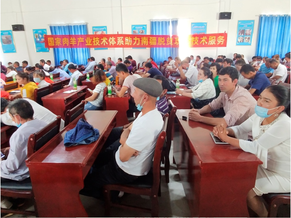 6月17—18日,饲料研究所国家肉羊产业技术体系“饲料营养价值评价岗”岗位专家王文奇副研究员、团队刘艳丰博士一行,在策勒县牧区和农区8个乡镇,就放牧绵羊牧养新技术、肉羊饲养管理常见问题及预防、多胎羊代乳粉人工育羔技术等内容,对基层技术人员、养殖场、专业合作社和农牧民开展集中授课培训,累计培训农牧民270余人次,专业技术人员20余人次,发放《肉羊高效养殖技术》书籍80余本,现场解答肉羊养殖技术问题10余条,培训现场气氛热烈。